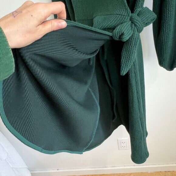 FRNCH Paris Women's Medium Green Ribbed Knit Wrap Knee Length Midi Dress V Neck