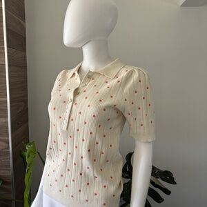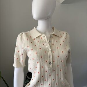 FRNCH Polo Tricot Beige Flowers Orange Sz Medium Authentic❤️