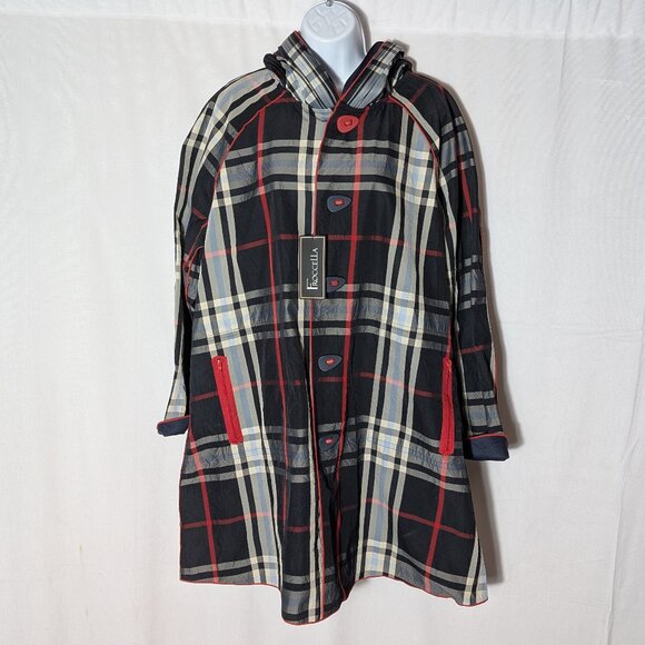 FROCCELLA Netherland NWT coat trench windbreaker Sz LARGE CHECKED HOOD OLD MONEY