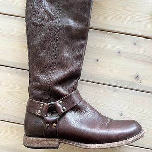FRYE Phillip Harness Tall Dark Brown Leather Boot 76850 Size 8.5