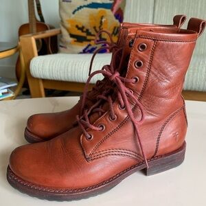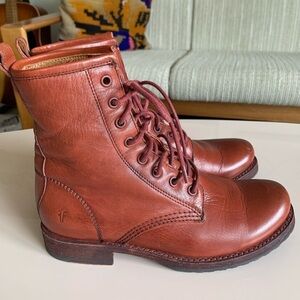 This combat boot has a way of making her presence known. Her streamlined silhouette, perfect fit and unique leathers are what distinguish her from all other combats. The soft vintage leather has been hand-burnished for the rich look you love.