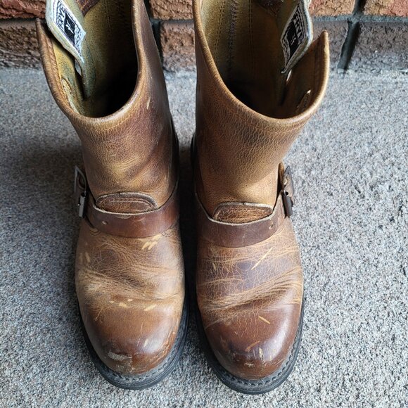 Beautiful Frye ankle boots, proudly made in the USA. Crafted from rich brown/tanned leather, these boots showcase a timeless design. Pre-loved with some distressing (see pictures), but they remain stylish and highly wearable.