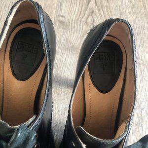 Beatiful leather Frye heels that look fantastic! They are a size 7 1/2! Please let me know if you have any questions