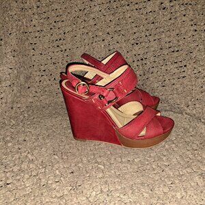 FRYE-Alexa Criss Cross Red Leather Wedge Sandals-Sz 6-Near Mint