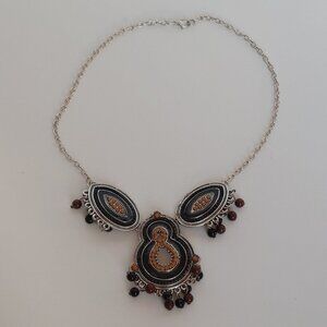 FUN Bohemian Statement Necklace Silver Tone Women's Necklace Black Brown