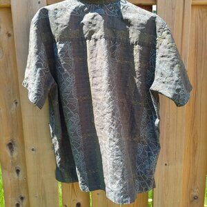 FUN Tropical Camo Print Button Down Short Sleeve Blouse Men's Large