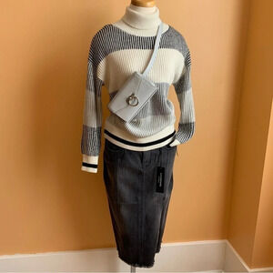 FUNSPORT Colorblock Ribbed Knit Turtleneck Sweater Size M Scandi Style