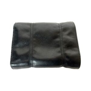 Measurement (approx.): 5" x 4" x 1".Unsnaps and unfolds to reveal 12 card slots, a snap closure coin pouch, a long bill slot, and three other slim slots behind all the card slots and coin pouch.