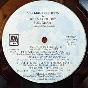 FURTHER REDUCED Vintage Vinyl LP –Kris Kristofferson & Rita Coolidge- Full Moon