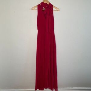 FUZZI Women's Floor Length Gown | V-Neck, Neck Tie Detail, Front Slit.