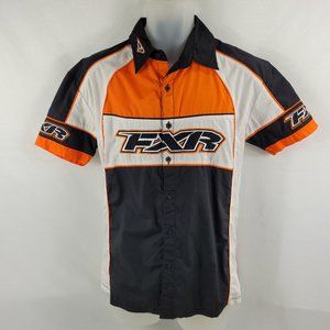 FXR Racing Shirt Motocross Snowmobile Race Black Orange Button Down Mens Small