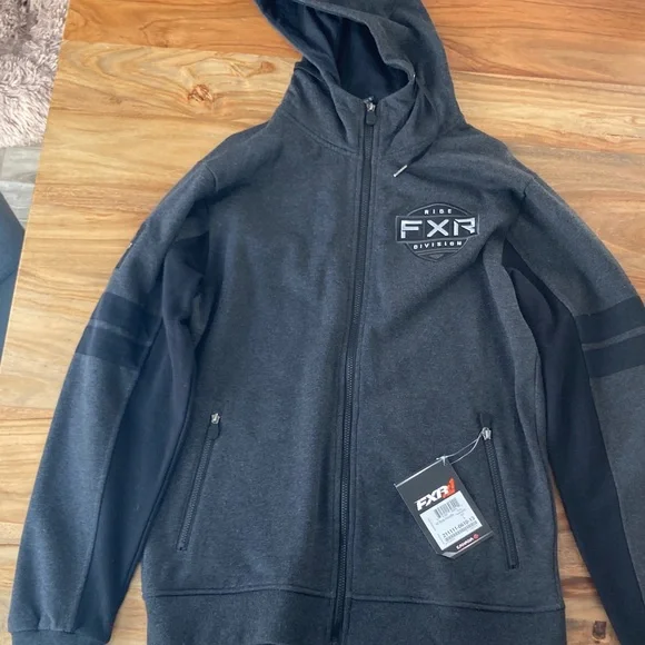FXR hoodie in char heather/black. Features a front zipper, hood and two front zipper pockets. Extra soft, fleecy interior. Never worn, in excellent condition. Smoke free home.