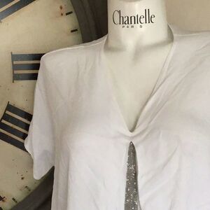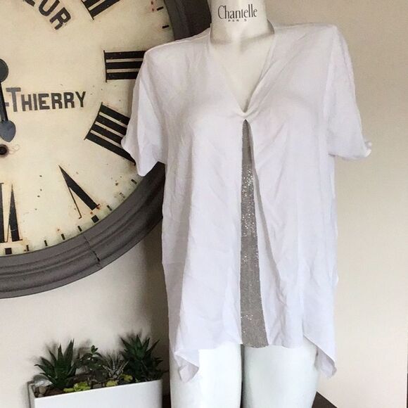 🎀Fabiana Filippi xs White Flowy Asymmetric Hem Top with Sequin Inlay ✨