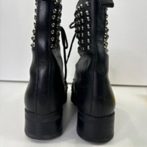 Fabianelli Women's Black Leather studded lace up ankle boots size 39