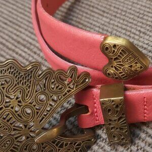 Make a bold statement with this Fabio Corti genuine leather belt, featuring an intricately designed vintage brass buckle. The red leather strap gives a unique boho-western edge, perfect for rodeo-inspired outfits, festival fashion, or Y2K street style. Pair it with high-waisted jeans, maxi skirts, or cowboy boots for the ultimate trend-forward look!