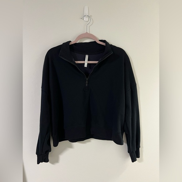 Black, fleece lined, thick, cozy 1/4 zip. VGUC, worn once or twice.