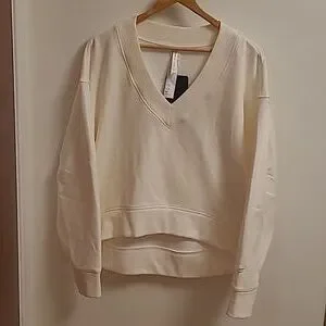 Luxe and layer-ready. Our V-Neck was meticulously designed, with the perfect drape and fit to flatter. In Cozy Fleece for max comfort. High-low hem. Articulated elbows. Generous V neck with wide luxuriously wide trim.