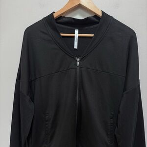 Fabletics Black Cropped Full Zip Long Sleeve Pleated Back Size XL