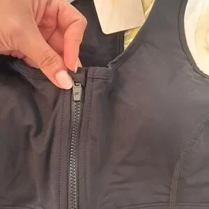 High-support front-zip sports bra by Fabletics. Smooth, stretchy fabric for all-day comfort. Racerback design for freedom of movement, plus handy pocket. Wide underband for added support. Easy front closure for quick on and off.