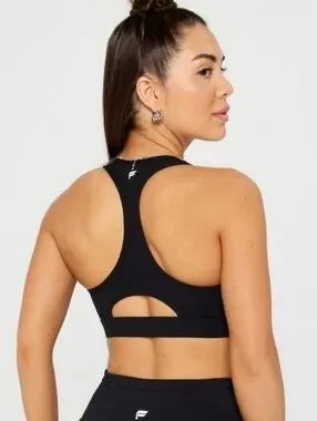 Fabletics Black Front-Zip Racerback Sports Bra