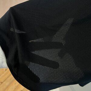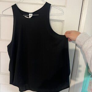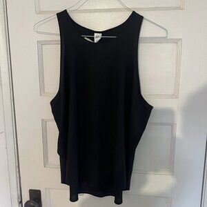 Sleek black mesh tank top. Sleeveless design. Perfect for workouts or casual wear.