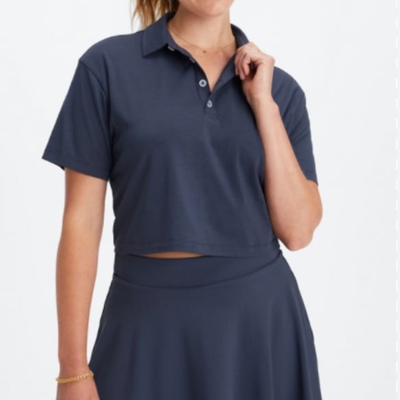 Fabletics boxy short sleeve polo shirt. Color: Dark Navy. SIZE: XXL (see attached Fabletics size guide chart). Features:
