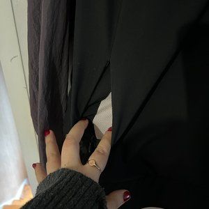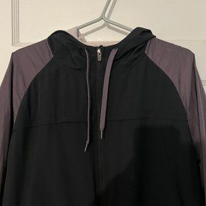 Worn a few times but still in great condition. Colour block style with a few added details like a layered back. Synched in elastic sleeves and a mesh interior make it useful and functional to wear. Has zippered pockets.