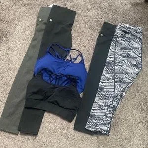 Fabletics High Waisted Leggings Grey and Black (2) Med