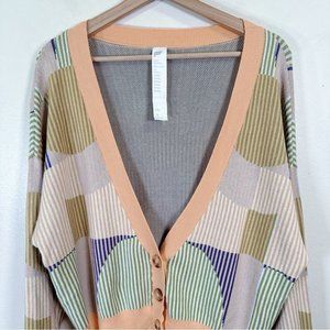 Stylish geometric pattern. Button-up front. Soft and comfortable.