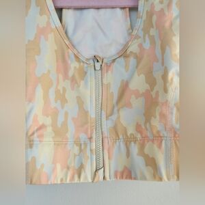 Fabletics On-The-Go Zip Sports Bra – Micro Camo – Size Small - Medium Impact