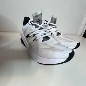 Sleek and stylish women's athletic shoes by Fabletics. White design with black accents. Perfect for workouts and casual wear.