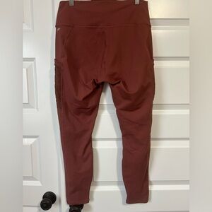 Comfortable and supportive leggings. Ideal for active wear. Side pockets. Deep burgundy/rust red. Gorgeous for fall.