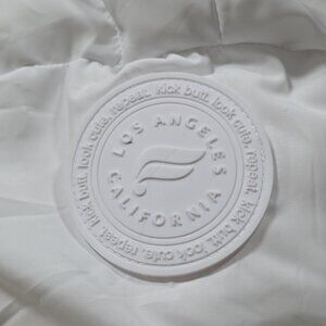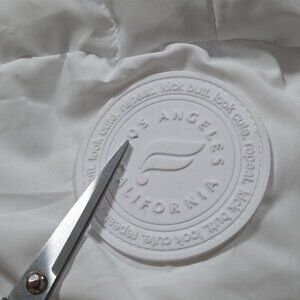 NOTE: there is tiny speck of dark (not sure what it is) under "o" of "Los Angeles" on the sleeve tag. Hardly visible.