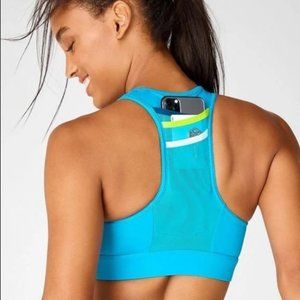 Fabletics Trinity High Impact Sports Bra High Neck Racerback Blue Women Size XXS