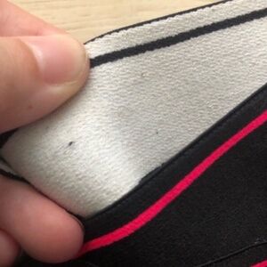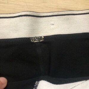 Gently worn condition. Unsure of size or material but is great quality stretch. Listed as XS, please refer to measurements. Small nick in the waistband from tag, as shown. Not a hole all the way through due to the layers, but is on both sides