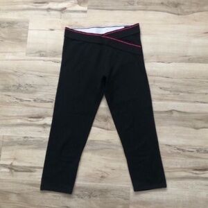 Fabletics Women’s Maddox Capri Leggings Black Coral Logo Waistband