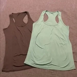 Fabletics racer back tank tops in good used condition, some small snags and piling. No size tags.
