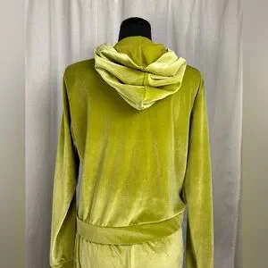 Get cozy with this fantastic sweater. Like new. No composition tags but likely rayon/polyester blend. The fabric falls nicely, zipper on has some weight to it. Small mark on the inside of the hoodie on the right side (see pictures). Joggers sold separately, but would offer a deal if purchasing both.