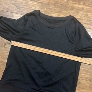 Fabletics black mesh split back workout top. Excellent gently used condition. No size tags so please go by measurements. Seems to measure like a small. Looks cute with a bright bra under it😜