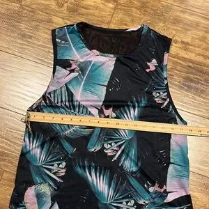 Fabletics fun mesh back workout top. Breathable floral front and all black mesh back. Gently used condition. Size M.