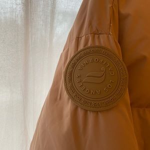 Cute and warm puffer jacket. Soft pink/beige color, worn twice. Excellent condition. Size M. Comes with strap