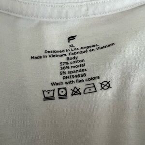 Fabletics Kevin Hart collab t-shirt. Really soft and offers a great amount of stretch. V-neckline, short sleeves. White colour with black graphic on the front, back and small logo on the sleeve. Kevin Hart F'd Me Up using the Fabletics logo. Funny, novelty graphic tee. Still has the plastic tag part attached, just no tags. Never actually worn.