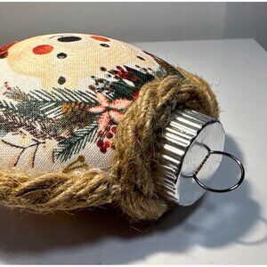 A charming fabric Christmas ornament featuring a deer and polar bear design. Accented with rustic rope trim, it enhances seasonal decor beautifully.