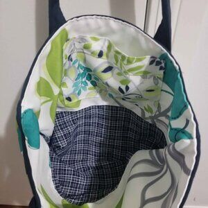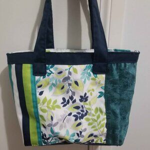 Fabric Shoulder Tote Bag Handbag Quilted Purse Handmade Teal Floral Market Books