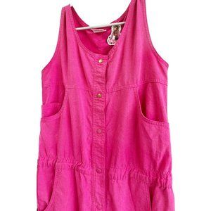 The 80s called; they want this absolutely fabulous, totally tubular Barbie pink vintage jumpsuit back! It was a very sad decision to part with this one. I love it so much, but it's just been sitting in my closet and I don't see myself wearing it out--unfortunately it's unflatteringly slightly too narrow for me in the hip/bum area, and I've since acquired another 80s jumpsuit that fits me better. However, my loss is your gain, and this piece is positively *screaming* to be your perfect Halloween Barbie outfit, or to be worn at any time of the year for any reason (or no reason at all--who needs a "justification" for wearing something as amazing as this?). A genuine retro piece, Lady Foot Locker brand. Adorable pocket details on the pants and chest (yes, it has pockets!), and closes with snap buttons up the front. The first two photos best reflect the real-life colour (for some reason the photos I took with my camera make it look firetruck red).