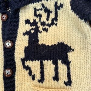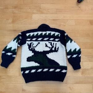 Fabulous 'FAB' Cowichan Style Navy/Cream Heavy Wool Reindeer Sweater