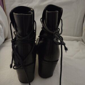 Fine leather booties by Plaza Suite. Lace up the back. Fit's a little narrow.