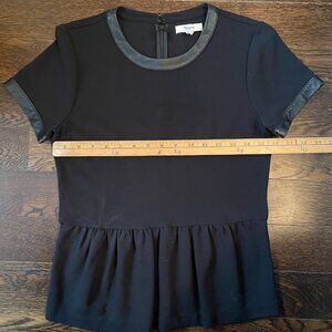 Fabulous Madewell Black Leather Trim Peplum Short Sleeve Top-Size XS