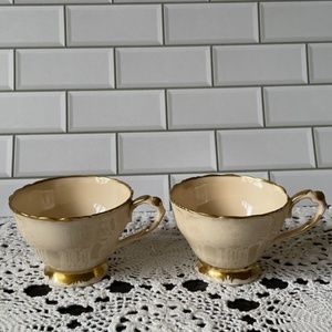 Both in very good condition. Cup on the left as no flaw detected. The cup on the right as one mark on the cup handle and colour dots underneath the cup. Probably since the beginning. Please see pictures.