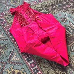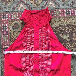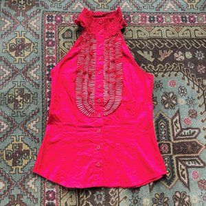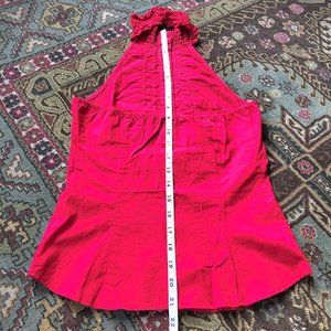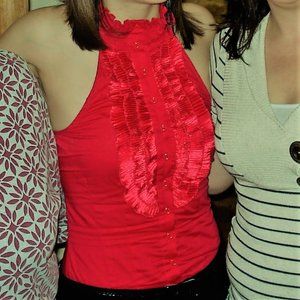 Fabulous Vivid Red Ruffled Button-Front Halter Top - Size XS - Vintage Piece!